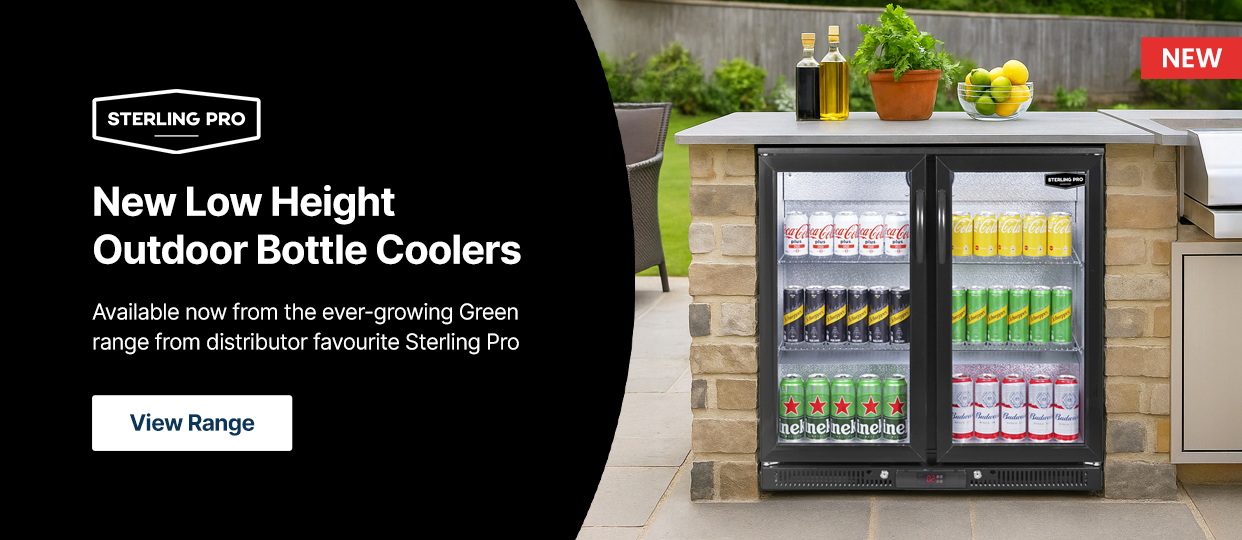 The new Sterling Pro low height outdoor bottle coolers are the ultimate solution for outdoor bars, kitchens, and entertainment areas, suitable for both commercial and domestic use.