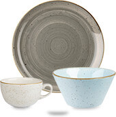 Churchill Stonecast is a superb contemporary collection which blends modern shapes and ideas with rustic tones and is painted by hand. Available in a range of distinct colours including Spiced Orange and Duck Egg Blue, Super Vitrified Stonecast plates are designed for superior stacking and feature contrasting rims and attractively flecked glazes for a traditional, rustic feel. The Churchill Stonecast range is perfect for restaurants and cafes which want less formal tableware which emphasises the wholesome nature of their food.